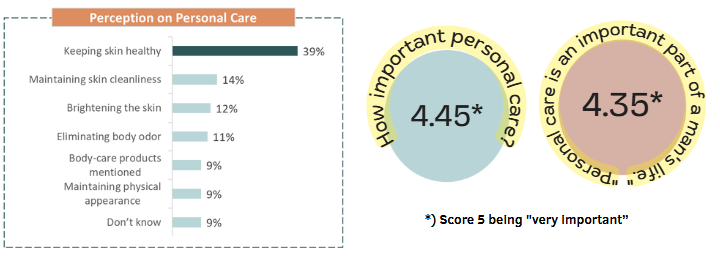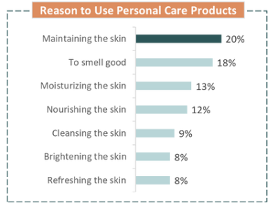 Align with their perception towards personal care, Reasons to use personal care product are maintaining the skin healthy, followed by the desire to smell good is their prior reason to use personal care products.
