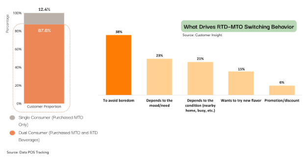 If we look at MTO’s consumer behavior toward RTD consumption, 87.6% of MTO's consumers are categorized as Dual Consumer, which means they purchased both MTO and RTD.
